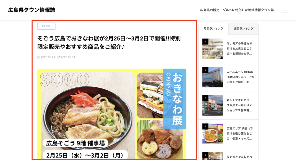 「広島県タウン情報誌」は、広島の“今”を届ける地域密着型WEBメディアです。