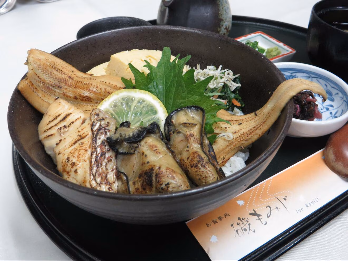 広島の郷土料理「はぶて焼き」を丼でアレンジした贅沢な一杯。鯛・穴子・牡蠣を使い、煮魚を焼き上げることで生まれる香ばしさと、煮出し汁が焦げる芳醇な香りが食欲をそそります。価格は1,750円(税込)、11:00〜21:00(ラストオーダー20:30)までお楽しみいただけます。