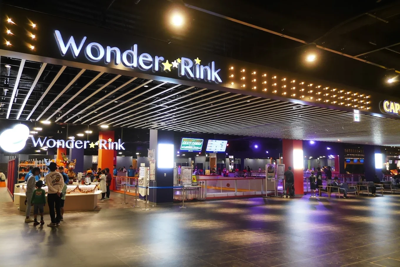 ワンダーリンクは、THE OUTLETS HIROSHIMA内にある屋内型施設です。年中無休で楽しめるアイススケートリンクは、光と音の演出に包まれた幻想的な空間が広がり、季節を問わず非日常的なスケート体験ができます。