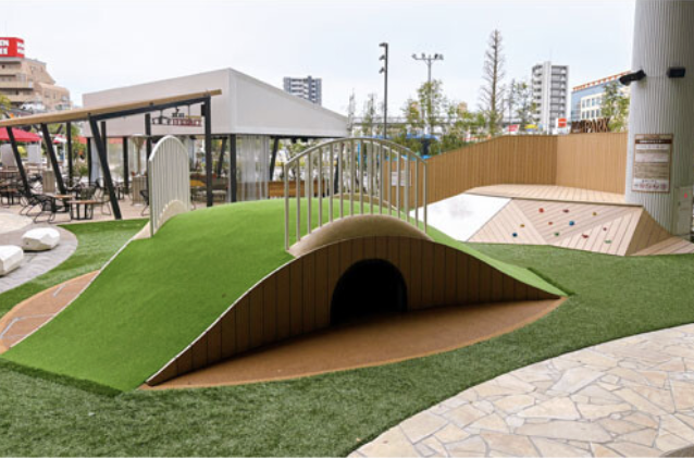 ROJIパークは、屋外にある開放的なプレイスペース。買い物の合間にちょっと体を動かしたいときや、子どもがぐずったときの気分転換スポットとして重宝します。ベンチも設置されているため、保護者は休憩しながら見守れるのもポイント。天気のいい日は、ここで遊ばせるだけでも十分満足感があります。