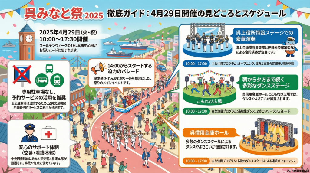 呉みなと祭りのスケジュールをご案内いたします。