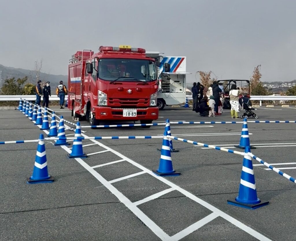ジ アウトレットモール広島で2026年1月24日(土)にはたらくくるまの展示会が開催されました。当日は、佐伯消防署・佐伯警察署からはしご消防車やパトカー・白バイなど計7種類の車両が展示され写真撮影ができるイベントとなっていました。