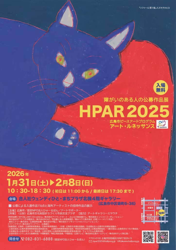 2001年に始まり、今年で第24回を迎える公募アート展「アート・ルネッサンスHPAR2025」。障がいのある方々の“ありのままの表現”を大切にし、一人ひとりの個性や感性と出会えるこの作品展に、one’s artアーティスト・鬼頭 純平の作品が展示されます。自由な発想とまっすぐな表現が生み出す、鬼頭 純平ならではの世界観を、ぜひ会場でご覧ください。
