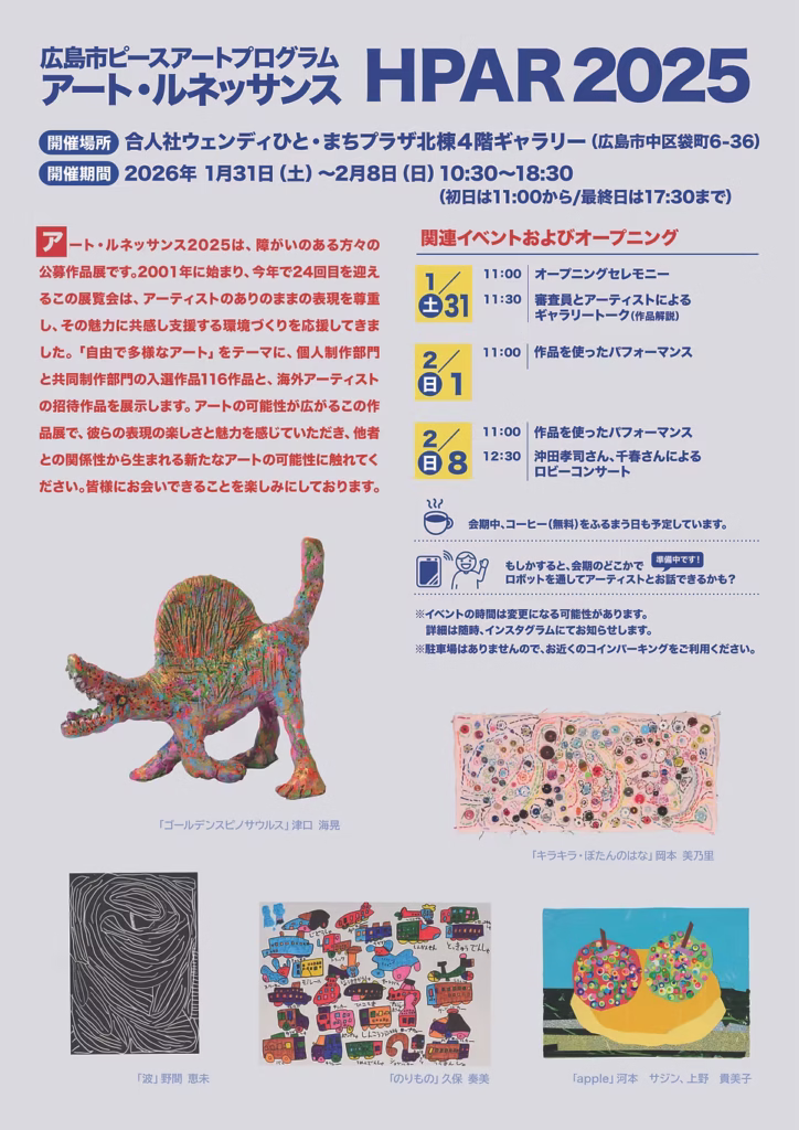- 開催場所:合人社ウェンディ ひと・まちプラザ北棟4階ギャラリー(広島市中区袋町6-36)