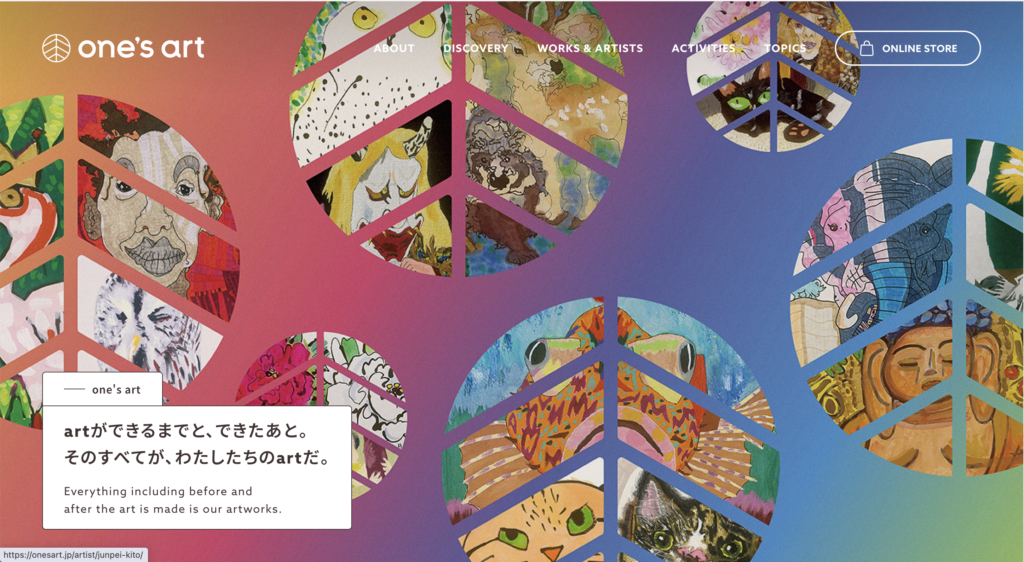 one’s art(ワンズアート)とは、株式会社ウッドワンが運営する障がいのある方の創作活動を応援し、アートを通じて一人ひとりの才能が輝く場を提供するプロジェクト活動です。作品の発表・販売を通して社会との接点を生み出し、誰もが自分らしく活躍できる社会の実現を目指しています。