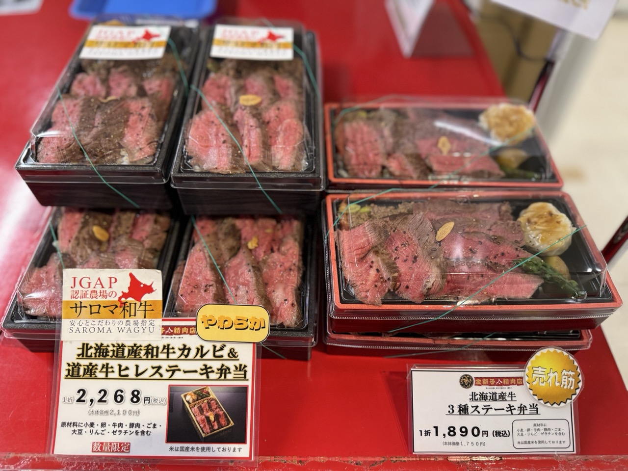北海道産牛肉の旨みを存分に味わえる贅沢なステーキ弁当。やわらかく焼き上げた肉と特製ソース、ごはんとの相性も抜群で、満足感たっぷりの一品です。