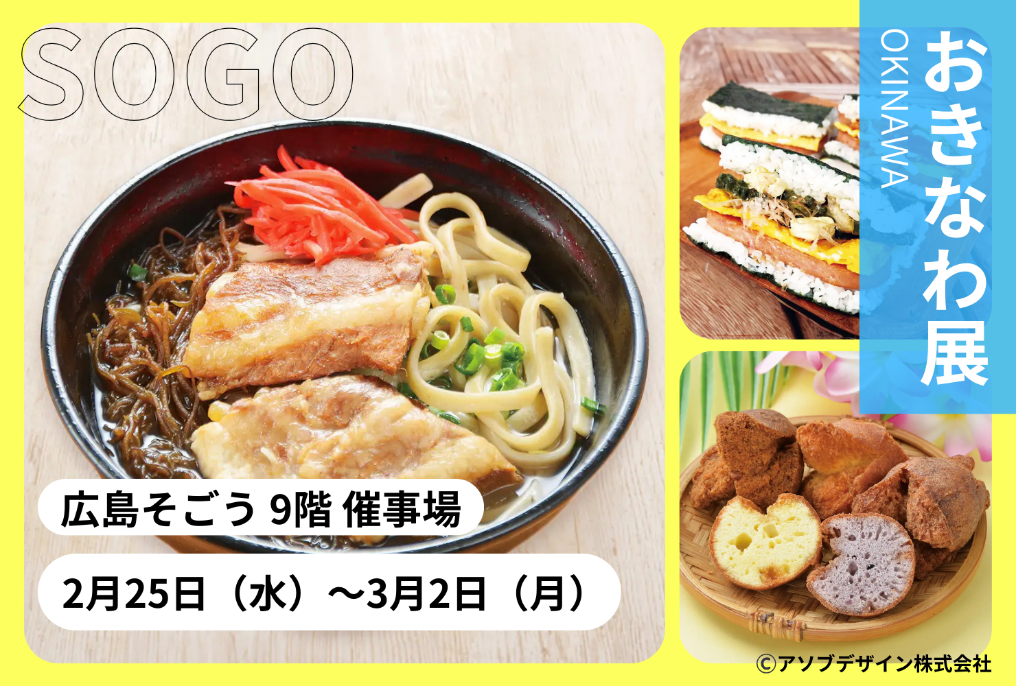 そごう広島店で開催中の「おきなわ展」は、沖縄の食と文化の魅力を一堂に集めた期間限定イベント。もずくソーキそばやおにポー、サーターアンダギー、黒糖アガラサーなどの郷土グルメに加え、からあげやAボールといった話題の味も登場し、広島にいながら沖縄旅行気分を楽しめます。南国ならではの素材や伝統の味わいを体験できる、見て・食べて満喫できる催しです!