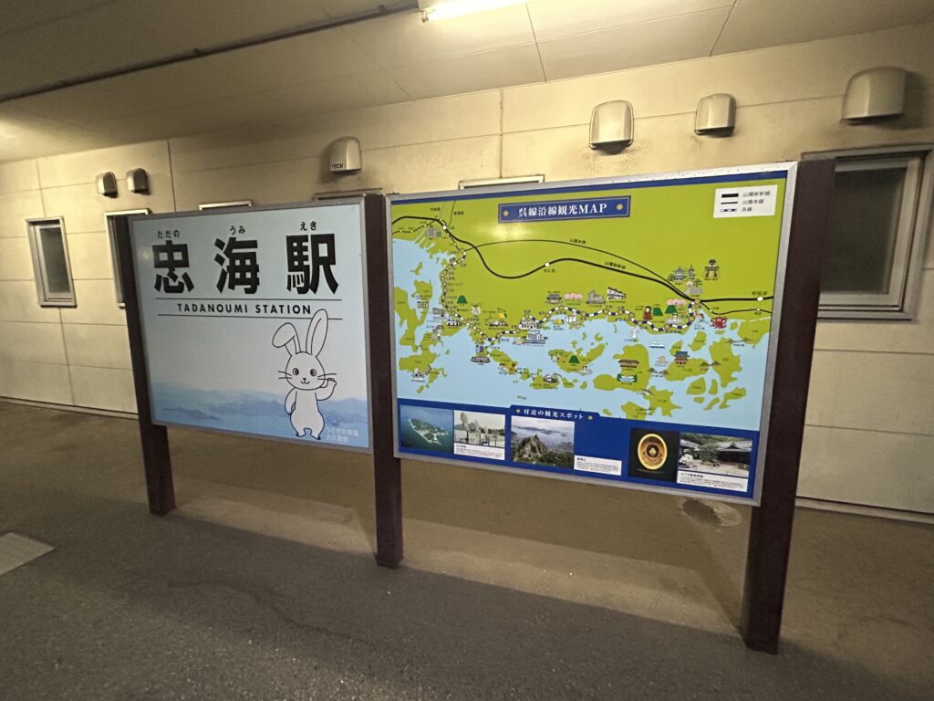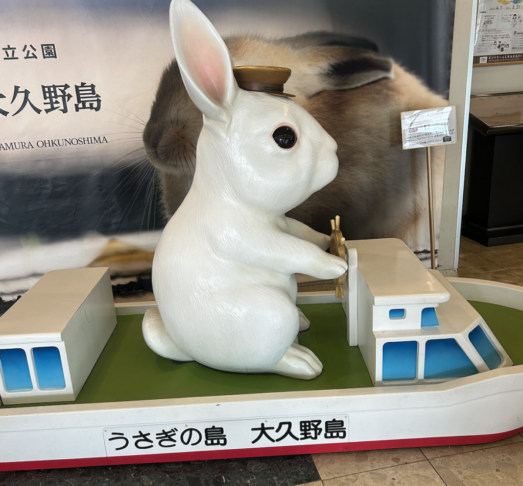 大久野島への玄関口「忠海港」のフェリーターミナルは、うさぎ尽くしの可愛らしいスポットになっています。